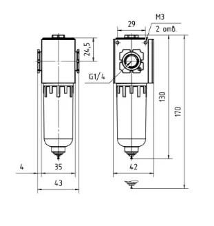 Монтажные размеры1/4 G, 35 х 42 х 170